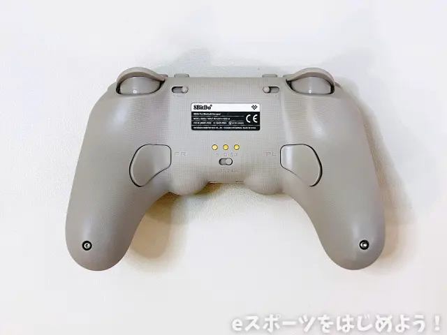 さらに上部には、R2/L2ボタンの押し込みの深さを変更するスイッチがあります。任天堂のコントローラーに慣れている人は、浅い設定にするのがおすすめです。